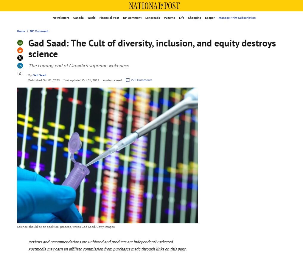 Gad Saad once again cites our DEI study, testifying before the Standing Committee on Science and Research.