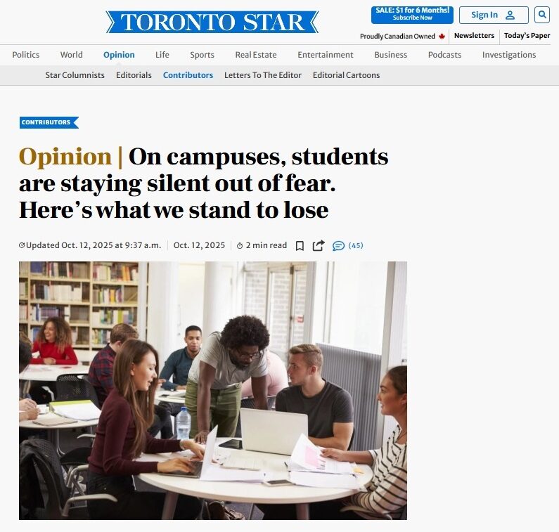 Marsha Barber at the Toronto Star discussed our freedom of expression on campus survey.